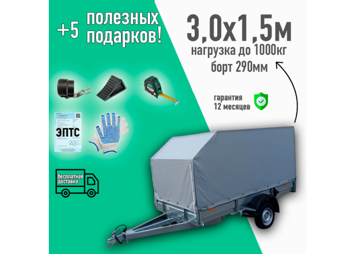 MullerWagen 1530 PRO — надёжный и функциональный двухосный прицеп для легкового автомобиля, идеально подходящий для перевозки различных грузов.
