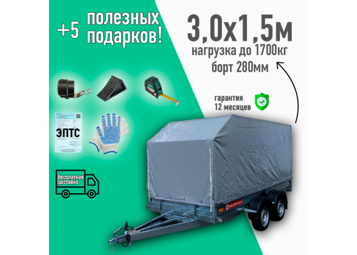 MullerWagen 1530 X2 PRO — надёжный и функциональный двухосный прицеп для легкового автомобиля, идеально подходящий для перевозки различных грузов.