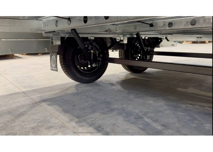 Подвеска – зависимая, рессорная с гидравлическими телескопическими амортизаторами. Ось – сварная в сборе со ступицей усиленная. Рессорная подвеска с гидравлическими амортизаторами сохраняет стабильную плавность хода при разной загруженности прицепа.